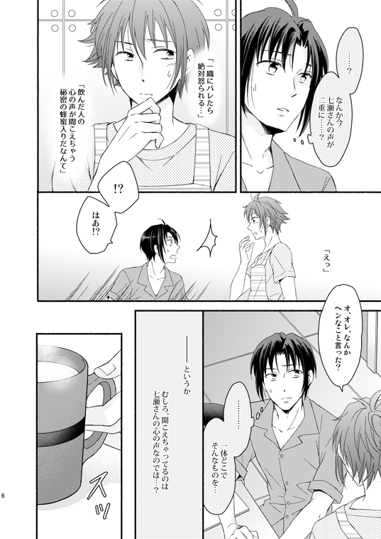 食べると心の声がだだ漏れになってしまう「秘密の蜂蜜」を手に入れた陸くんに巻き込まれる一織くんのお話です。