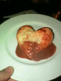 ↓左/コースのメイン料理。パイ生地がハート型!