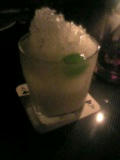 ↓右/私が飲んだカクテル。カルピス+パインリキュールだったかな…。中身の丸いのは青いチェリーです。見事にイザーク色…うふふ。