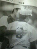 『ピンチの場面で、捕手がマウンドの投手におまじないのキス』